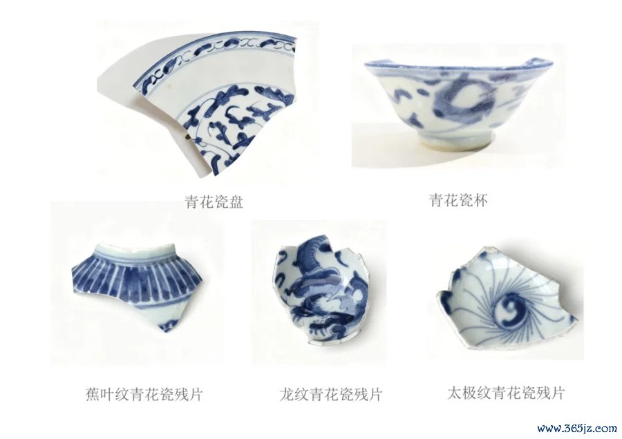 周西遗迹出土明清时辰遗物以青花瓷器为主,大多饰以精良的花草纹样,部分可见蕉叶纹、太极纹、龙纹。